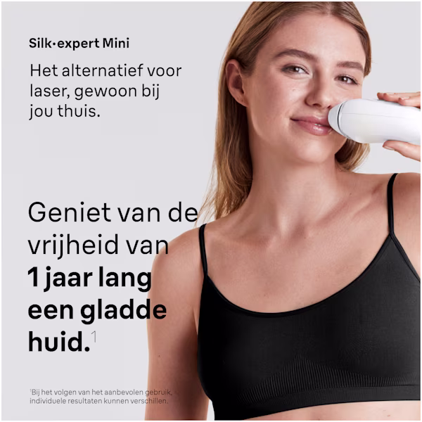 Met de Braun Silk·expert Mini geniet je van de vrijheid van 1 jaar lang een gladde huid¹. Het is ook handig, omdat je het vanuit het comfort van je eigen huis kunt gebruiken.